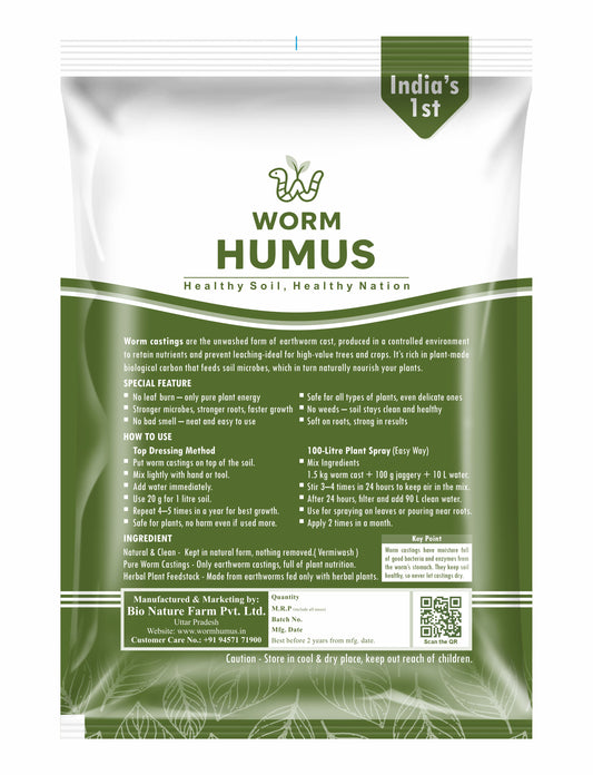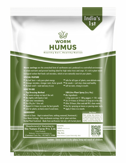 Worm Humus 1 kg Vermi Compost – 100% Organic, Chemical-Free Fertilizer for Plants | Improves Soil Fertility & Growth